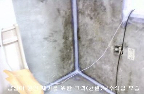 빌라 벽면 곰팡이 원인제거를 위한 크렉부분 보수공사