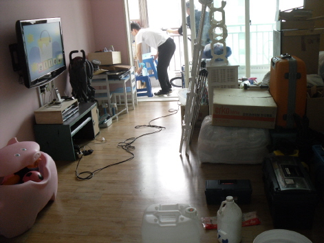 배란다의 많은 짐들을 빼내고 청소가 끝나면 다시 재배치 정리 해드리고 있습니다.