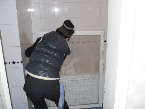 창문을 다뜯어서 세척하는 모습 보이시죠~~