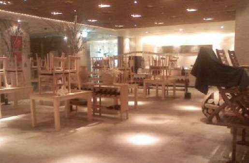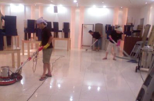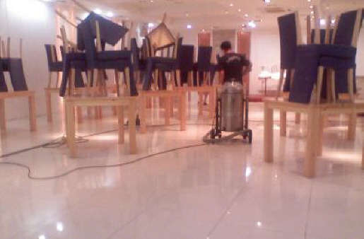 뷔페 바닥 왁스 작업